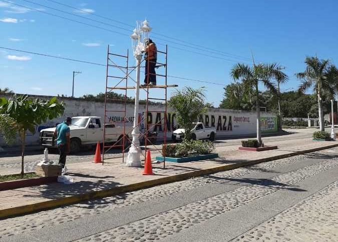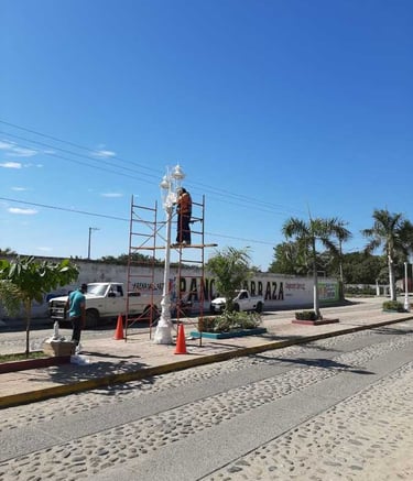 Ampliacion de andador publico en el poblado de San Juan de Abajo, municipio de Bahia de Banderas, Nayarit. Se realizaron trabajos de sustitución de adoquín, reposicion de concreto estampado, suministro y colocación de luminarias LED tipo colonial con postes de aluminio vaciado e Instalación eléctrica para luminarias.