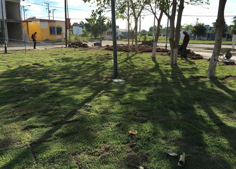 Plaza publica de 5500 m2, en la Localidad de San Vicente, Nayarit. Cuenta con andadores de concreto estampado, areas de jardines, un kiosko y bancas construidas en sitio, ademas se realizo la instalación de alumbrado publico e instalaciones hidráulicas, colocando hidrantes en los jardines para posterior riego.
